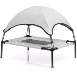 Transat Chien Noir 91x76x16cm 35kg Max Lit Relaxant Surélevé Animal Domestique Protection Soleil L