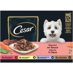 CESAR 72 Sachets Fraîcheur En Sauce 4 Variétés Pour Chien 100g (6×12)