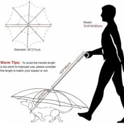 Dimensions: diamètre 77 cm, longueur du manche 48 cm, longueur de la laisse 25 cm. Remarque: puisqu’il s’agit d’une nouveauté, ça prendra probablement du temps pour que le chien s’y habitue.