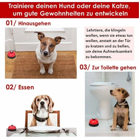 Comment dresser votre animal — ÉTAPE 1: Placez les sonnettes sur la poignée de porte.ÉTAPE 2: Lorsque votre chien a besoin de sortir, amenez-le aux sonnettes, faites sonner les cloches avec sa patte et donnez-lui un ordre, puis ouvrez la porte pour le laisser sortir. ÉTAPE 3: Répétez le processus encore et encore lorsque votre chien a besoin de sortir, pendant trois semaines ou moins, en donnant toujours la même commande et les mêmes éloges.