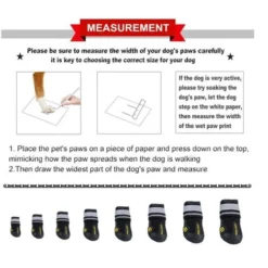 Largeur Taille 7 : 6,6-7,0 cm (2,59-2,75 pouces) pour 63-75 lb ; Idéal pour les Golden Retriever de taille moyenne, les grands samoyèdes, les bergers allemands, les labradors, etc. Veuillez vous référer principalement à la largeur de la patte du chien pour choisir la bonne taille pour votre chiot à partir du tableau des tailles de l’image.