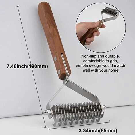 - 2. CLEAR TOUS LES DIFFERENTS TAPIS ET TANGLES – Notre peigne double face pour animaux de compagnie a un nombre de dents différent de chaque côté. Utilisez le côté de faible densité comme un r teau démêlant pour matts et enchevêtrements obstinés. Ensuite, utilisez le côté plus dense en tant que démêlant, outil de désossage ou r teau de sous-couche pour un éclaircissage plus rapide des résultats et un contrôle de la perte.
