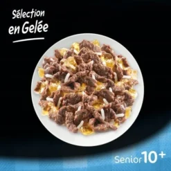 Aliment complet pour chiens seniors à partir de 10 ans – 4 variétés en gelée (Au Boeuf & au Riz / au Poulet & au Riz / à l’Agneau & au Riz / à la Dinde & au Riz).