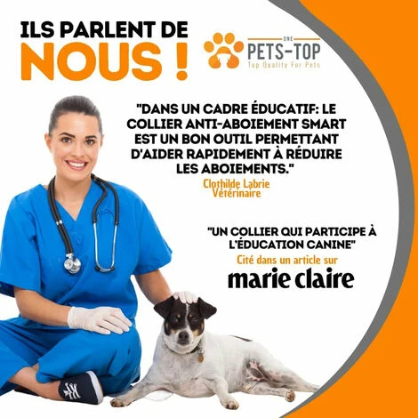 - One PETS-TOP depuis 2017, notre Marque Française Spécialisée pour vous apporter le meilleur en termes de qualité de fabrication et de suivi en cas de besoin avant ou après achat. Commandez dès maintenant votre Collier Anti Aboiement pour chien Smart et retrouvez le calme tout en évitant la plainte du voisin !