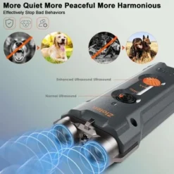 【Dog Training & Deterrent Mode】 Fournit 2 niveaux d’ultrasons (normal et amélioré) et 2 modes de lumière (lampe de poche et lumière stroboscopique) pour le dressage des chiens, le contrôle des aboiements, la correction des comportements ou pour vous aider à arrêter un chien qui s’approche. Lorsque vous appuyez sur le bouton, l’appareil vibre, ce qui vous apporte une meilleure expérience d’utilisation.