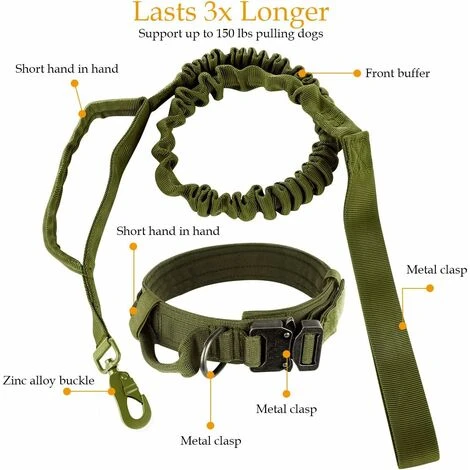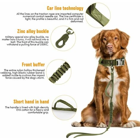 Conception de corde de traction tactique : design à double poignée, une extrémité à l’avant, une extrémité, la longueur normale de chaque chaîne pour chien est de 101,6 cm (longueur étendue de 160 cm). Permet de dresser et de contrôler les chiens plus