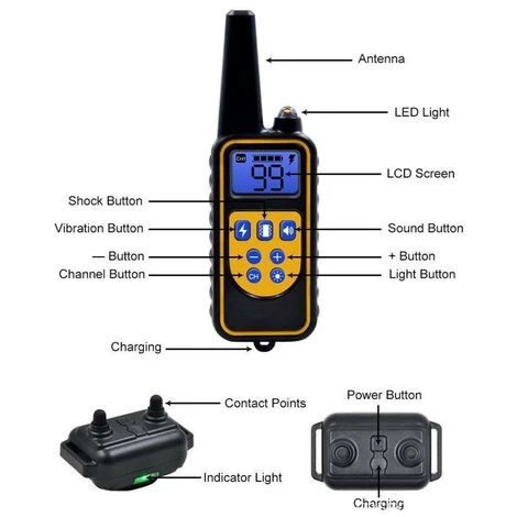 Portée à distance de 300 mFacile à dresser votre chien dans le parc ou dans la cour | 100% étancheChien d’entraînement dans l’eau ou sous la pluie, pensez à couvrir le port de charge. | Lumière LED intégréeAppuyez longuement sur le bouton d’éclairage de la télécommande pendant plusieurs secondes pour allumer la lumière du collier. |