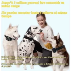 100% résistant à l’eau et peut contrôler jusqu’à 3 chiens en même temps : ce collier est certifié IPX67 résistant à l’eau, ce qui le rend idéal pour les chiens qui aiment s’amuser dans l’eau. La télécommande dispose de 3 canaux, se synchronisant avec 3 colliers différents, ce qui vous aide à dresser jusqu’à 3 chiens en même temps.Remarque : un seul collier inclus.