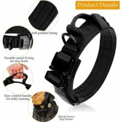 Sûr et facile à régler : boucle en métal à libération rapide et velcro, double couche d’assurance est plus sécurisée. Il est plus facile à régler et convient aux chiens de grande et moyenne taille. La conception de la poignée sur le collier vous permet