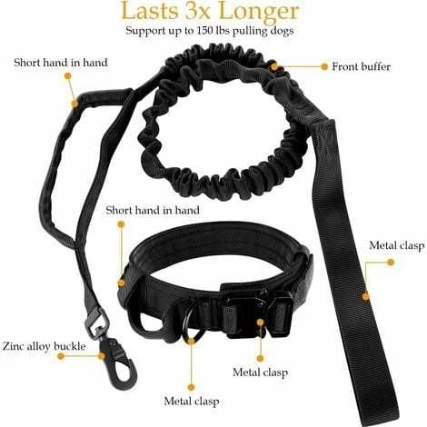 Design de corde de traction tactique : double poignée, une extrémité avant, une extrémité, la longueur normale de chaque chaîne de chien est de 101,6 cm (longueur étendue 160 cm). Entraînement et contrôle des chiens plus flexibles.