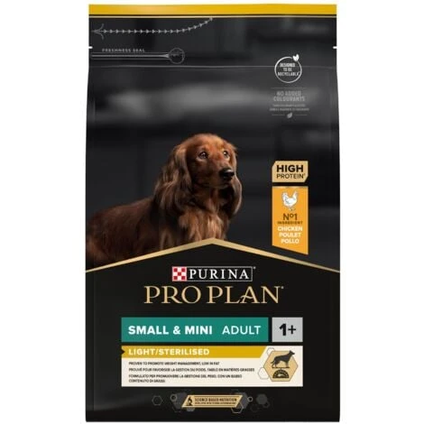 Les croquettes Pro Plan pour chiens adultes Small & Mini OPTIWEIGHT sont recommandĂ©s pour les chiens en surpoids ou stĂ©rilisĂ©s. Riche en poulet, elles aideront Ă rĂ©duire la sensation de faim de votre chien. Conditionnement : 3 kg. Croquettes Pro Plan Small & Mini adulte light / stĂ©rilisĂ© OPTIWEIGHT au poulet, Croquettes recommandĂ©es pour des chiens en surpoids ou stĂ©rilisĂ©s, Ces croquettes sont spĂ©cialement conçues pour les petits chiens (poids < Ă 10 kg), elles permettront de rĂ©duire la sensation de faim de votre animal, Riches protĂ©ines, en glucides, en fibre et en poulet, Permet de maintenir la masse musculaire lors de la perte de poids ou après la stĂ©rilisation de votre chien, Elles permettent de diminuer la surchage de frĂ©quence cardiaque ( jusqu’Ă 21% après 12 semaines d’utilisation), RecommandĂ©es pour des chiens de 10 mois Ă 9 ans. Conditionnement : 3 kg.