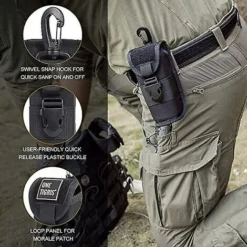 Fermeture à boucleCadre en nylonLavage à la main uniquementPratique : Facile à ouvrir et à fermer avec boucle à dégagement rapide – Mousqueton pivotant pour un enclenchement et un retrait rapides Unique : Doué d’un chiffon de nettoyage avec le cordon de chocBonne protectionVous avez vraiment besoin d’un étui décent pour vos lunettes ou lunettes de soleil, ou autres lunettes. C’est celui-ci.Plusieurs options de montageAttachez-le à la ceinture, aux gilets ou à tout sac modulaire avec sangle verticale/crochet et boucle horizontaux – le panneau à boucle s’accroche aux anneaux en D avec clip en plastique arrière, vous pouvez toujours obtenir un accès rapide à vos lunettesLargement utiliséConvient pour les lunettes, les lunettes de soleil, les lunettes de lecture, les lunettes de protection, d’autres lunettes ou tous les jours, transportez vos nécessités et vos petits outils.