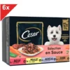 CESAR 72 Sachets FraĂ®cheur En Sauce 4 VariĂ©tĂ©s Pour Chien 100g (6×12)