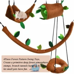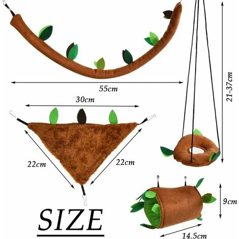 【Super süßes Dschungel-Set】 Das kreative Dschungel-Set beinhaltet einen Stumpftunnel, eine lange Seilbahn, zwei dreieckige Hängematten und eine runde Hängematte, um die Dekoration Ihres Haustierhauses zu bereichern. Super süßer Dschungel-Look, hell und energisch, Ihr Haustier wird es mögen.