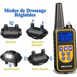 Portée de 800 m – Le collier de dressage à distance offre une portée allant jusqu’à 800 m en utilisant la fréquence RF434Mhz, ce qui facilite l’entraînement de votre chien dans le parc ou la cour.