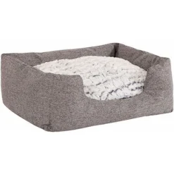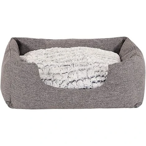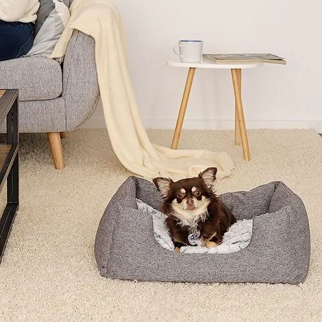 Canapé confortable pour chien en tissu chinée et avec un coussin de chien pratique et réversible. Le coussin réversible est composé de 2 tissus différents, vous pouvez donc choisir entre 2 designs différents à tout moment.