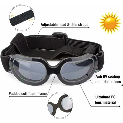 Sangles antidérapantes réglables: les lunettes de soleil sont réglables, ajustez à la plage appropriée en fonction de la taille réelle de vos animaux de compagnie, évitez le glissement de la sangle de la tête de votre animal de compagnie.