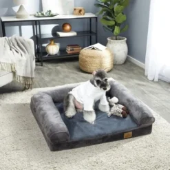 Rebords rembourésLes rebords rembourés de coton PP permetent à votre chien de reposer sa colonne vertébrale ou sa tête de façon optimale | Mousse haute résilienceLe canapé chien orthopédique possède un rembourrage épais en mousse haute résilience qui soulage l’appareil locomoteur | Design imperméableLe revêtement du tapis pour chien est étanche pour protéger le rembourrage afin de prolonger la durée de vie du produit |