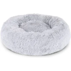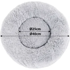 Ce canapé rond pour chien en forme de beignet et particulièrement moelleux, offre à la fois à votre animal de compagnie un couchage très douillet et un endroit où se réfugier. Grâce à ses couleurs chaudes très actuelles et son design unique, ce coussin pour animaux domestiques s’intègre parfaitement dans tout type d’intérieur. Les picots antidérapants à l’arrière du coussin assurent une grande stabilité au sol. Le lavage de ce panier pour chien s’effectue à la main. Ici voici un modèle en gris clair de taille (S) et de 40 cm de diamètre extérieur.