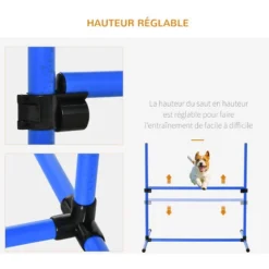 – Hauteur de l’obstacle réglable à votre guise, parfait pour adapter la difficulté à la progression de votre chien