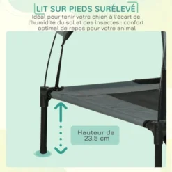 – Lit sur pieds surélevé idéal pour tenir votre chien à l’écart de l’humidité éventuelle du sol et des insectes : confort optimal de repos pour votre animal
