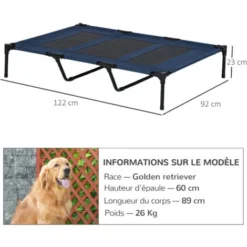 – Lit sur pieds XXL surélevé idéal pour tenir votre chien à l’écart de l’humidité éventuelle du sol et des insectes : confort optimal de repos pour votre animal