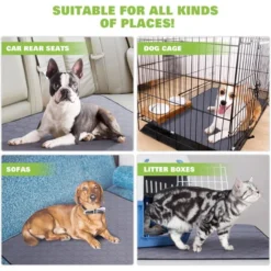 ADAPTÉ À TOUS LES TYPES DE SCÉNARIOSCoussin de siège :placé sur le siège de la voiture ou dans le coffre pour protéger les sièges et l’intérieur de la voiture des ongles, de la salive ou de l’urine des animaux domestiques.Tapis de nourriture : les tapis placés sous les bols de nourriture peuvent faciliter le nettoyage des restes de nourriture dispersés.Tapis litière pour chat:Placez-le sous la litière de votre chat pour un nettoyage facile et ajoutez également une protection du sol dans votre maison.Cushion:Placez ce coussins d’entraînement à langer sur le panier de l’animal pour éviter que les poils de l’animal n’y adhèrent trop.Protection du canapé et du sol:Ce tapis propreté chien à langer peut également être placé directement sur le canapé et le sol pour éviter des problèmes inutiles aux animaux de compagnie.