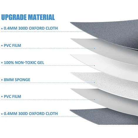 Matériau du Produit: Tissu Oxford+PVC d’épaisseur 0.4mm + Gel non toxique à 100%