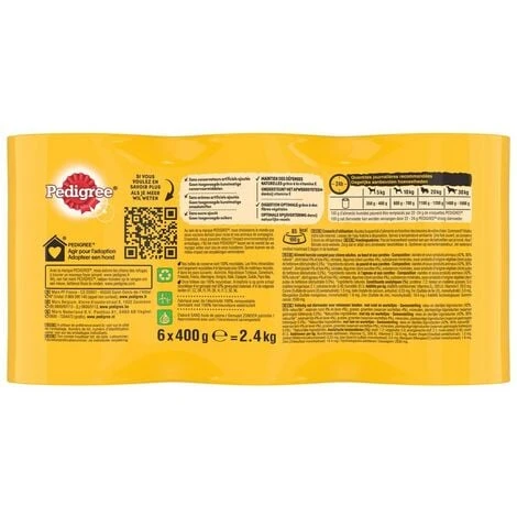 Pedigree . Des aliments complets en boîtes, en sachets fraîcheur et en croquettes, ainsi que de délicieuses récompenses pour tous les chiens.