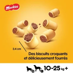 Aliment complémentaire pour chiens adultes. Les biscuits pour chien Pedigree Markies sont délicieusement fourrés et vraiment croquants. Une récompense idéale pour tous les moments de jeu avec votre chien.