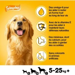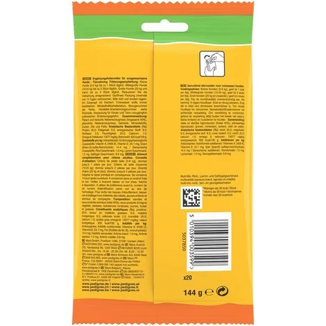 Aliment complĂ©mentaire pour chiens adultes – Multi Mix de Saveurs (Boeuf/Agneau/Volaille). Les friandises Pedigree ® Schmackos sont une excellente façon de rĂ©compenser votre chien ou simplement de lui montrer combien vous l’aimez. DĂ©licieuses et tendres rĂ©compenses sans arĂ´mes artificiels et pleines de saveurs dont les chiens raffolent Ă moins de 30 calories par rĂ©compense. Avec des omega 6 pour l’aider Ă rester en forme tout au long de sa vie, des vitamines E pour l’aider Ă prĂ©server ses dĂ©fenses naturelles et des minĂ©raux, dont du calcium, pour l’aider Ă garder des os solides.
