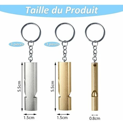 Contenu de l’emballage : Vous obtiendrez 6 sifflets en métal dont 3 de couleur or et 3 de couleur argent, qui peuvent pleinement satisfaire vos besoins quotidiens d’utilisation.