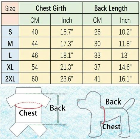 Taille: Tour de cou 30cm, longueur dos : Poitrine 30cm : 44cm