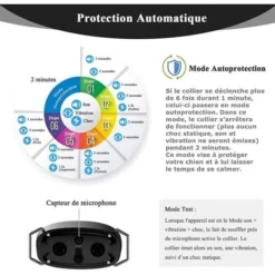 Collier intelligent automatique : le collier fonctionne en mode automatique, aucune télécommande requise. S’il est déclenché plus de 6 fois en 1 minute, ce collier anti-aboiement cessera de fonctionner pendant 2 minutes. Ce mode est conçu pour protéger
