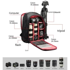 - Le sac à dos rembourré est un moyen pratique de transporter tout votre matériel photographique en toute commodité, le poids étant réparti confortablement sur vos épaules et votre dos.