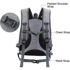 Sac à dos pour chien pour chiots et chats, sac à dos avant pour les voyages des chiots de compagnie, avec la tête tournée vers l’extérieur, adapté à la randonnée en plein air (gris) 0,56 kg