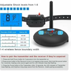 Distance à 4 Niveaux Réglable : il y a 4 niveaux de couverture réglable. Le rayon à partir du centre de l’émetteur est de 50 m, 100 m, 150 m, 200 m. Votre chien peut jouer librement et en toute sécurité sans se soucier des mouvements restreints ou de se perdre.