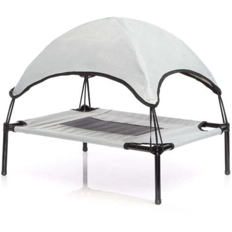 Transat Chien avec Toit XL Gris 122x91x16cm 50kg Lit surélevé Chat