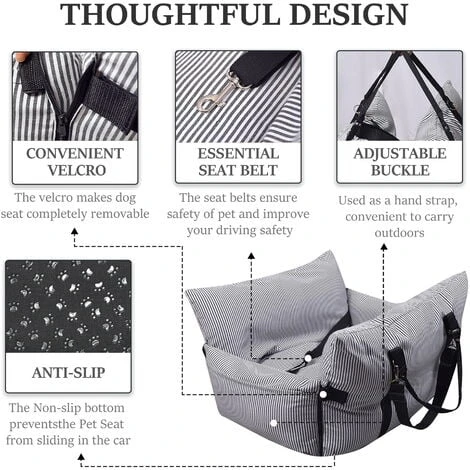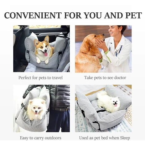 Il y a des poches de rangement des deux côtés du siège auto pour chien, vous pouvez y ranger des fournitures pour animaux de compagnie. Le fond antidérapant empêche le siège d’appoint pour animal de compagnie de glisser dans la voiture, offrant un environnement plus sûr pour les animaux de compagnie.