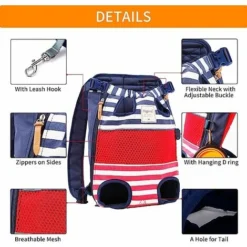 6 OUVERTURES POUR LE CONFORT: Très confortable pour votre chien grâce aux 6 couvertures pour sa tête, ses pattes et sa queue. L’encolure de ce sac à dos chien est élastique, ça n’étrangle pas son col. Muni d’une courte laisse au dedans pour plus de sécurité,
